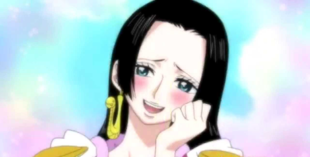 What is concerning about all three women is the rapidity in which their emotions change. These are examples of unhealthy relationships: you cannot fall in love, to the point of fainting and tears and nuptials, in such short a space of time, and yet these powerful women totally transform within a page. The only male character who is close to matching these erratic displays of emotion is Sanji, and even his moments are played off as silly and comedic. He’s never really portrayed as fully, monogamously, loving these women: they are just pretty; embodiments of his personal fantasies. He doesn’t risk the safety of the crew, or prepare to destroy the plans of his friends, because he loved a woman. But these pretty pirate women are forbidden from being truly, 100% evil: all they need is male affection—to be “melted”, and their villainy is cured.