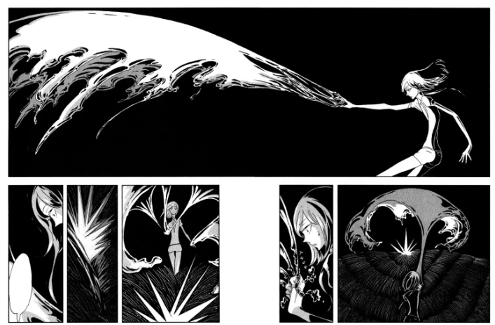 The setting is unique and beautifully drawn. Each character design is fluid and androgynous, their slender bodies often sparkling to exemplify the property of their individual crystals. Our protagonist, Phos (after the stone phosphophyllite) is a boisterous irritant, whose unusual green hue makes them a noted target. They’re also weaker and more brittle than their peers, which gives way to a cruel nickname 3.5 (rereferring to their hardness. The strongest is 10). The leader of the Lustrous, a monk-like person known as Sensei, tasks Phos with documenting a natural history of the world, but Phos wants to be more useful as a fighter or watcher. On Phos’s quest for a more interesting past time, they meet Cinnabar, a volatile Lustrous that involuntarily emits a substance that is damaging to other stones, but whose night watches provide invaluable information about life on Earth for Phos to take note of.