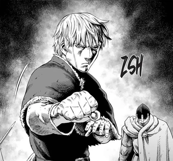 Baltic Sea provides the balance to Thorfinn’s vow. In the midst of war, with vulnerable people to protect and a host of others actively trying to kill you, it’s impossible to be completely non-violent. Thorfinn creates ways to end his conflicts by quickly incapacitating his opponents. With his found family always on his mind, he pushes forward to carve the best way to peace. My favourite fight in the arc is Thorfinn and Garm’s, how easily Thorfinn defeats Garm through wits and strategy—tactics he learned from Askeladd. In that moment, Thorfinn becomes Garm’s mentor, and Garm, a lonely, erratic fighter driven by bloodlust, is humbled.