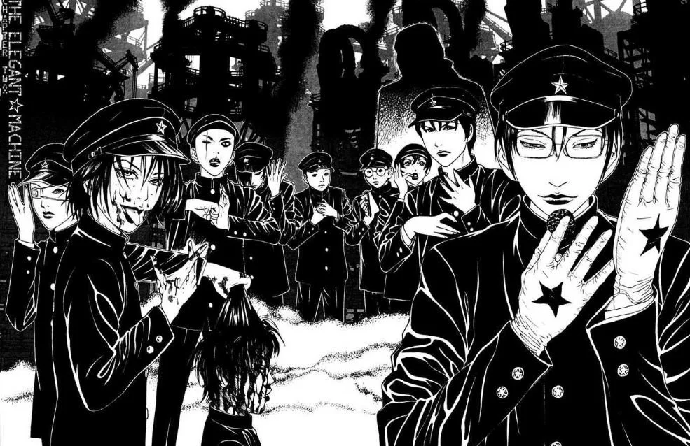 Lastly, Lychee Light Club/Litchi Hikari Club is another manga I don’t see many people talk about. Back in the days when I was in school, Lychee Light Club was one of those series people would throw into “scariest/most disturbing” lists to prove they were connoisseurs of the craft and didn’t just stick to mainstream works like Uzumaki and I am A Hero. Now, it’s been all but forgotten. Written by Usamaru Furuya, the manga is based on a stage play of the same name, which is evident from the panelling and positioning of the characters, who are often meaningfully assembled in a way that immerses the reader into the horror of the story. A group of dubious teenage boys form a secret club in the basement of their school. Incel in nature, they have a disdain for girls, but are still obsessed with having a relationship, and try to create their own monster that will help them harm the girls in their school. They end up abducting a female teacher and subject her to torture, and as the story intensifies to its grand, dramatic ending, two club rivals come into conflict with each other, which ruptures the cohesion of the club. Just based on the subject content, this story won’t be for everyone, but I appreciate its commitment to being unapologetically gory and disturbing. You get exactly what it says on the tin with Lychee Light Club – enter at your peril.